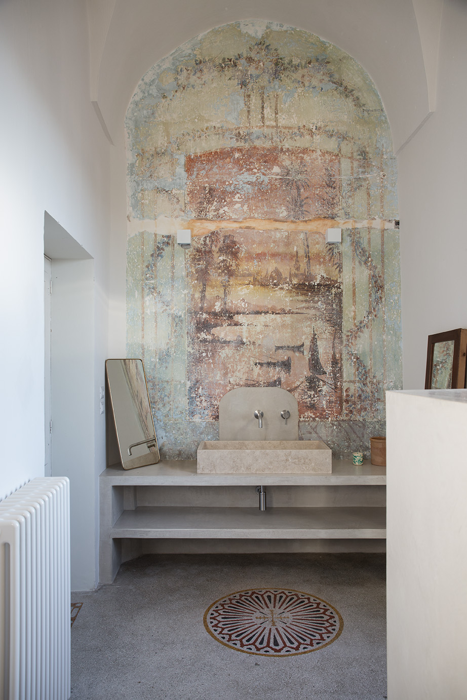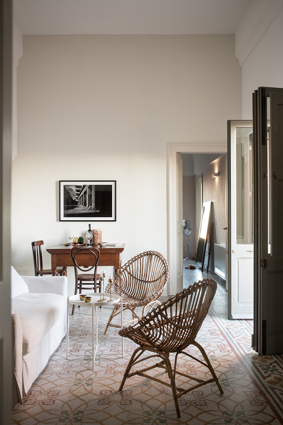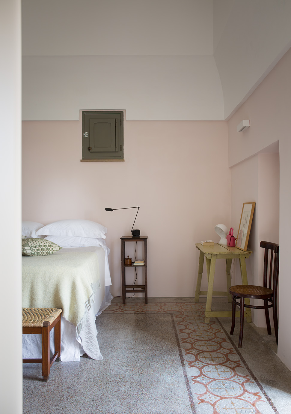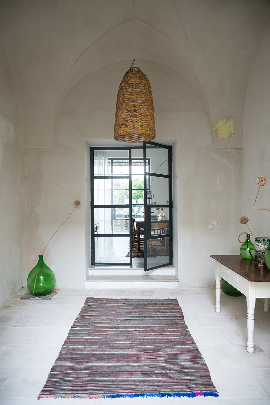 - Pavimentazioni: Il progetto ha previsto il recupero delle cementine esistenti, insieme a nuove pavimentazioni in basole di pietra leccese e battuto di cemento, creando un ambiente elegante e accogliente.