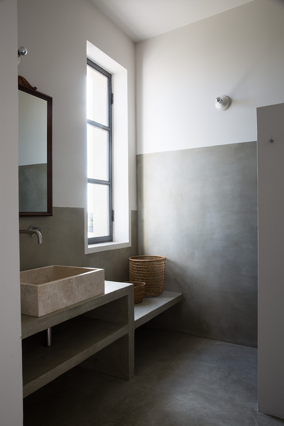 - Finiture di pregio: Le finiture interne, con intonaci da risanamento in calce idraulica NHL e rivestimenti in microcemento nei bagni, esaltano la luce naturale e i volumi spaziosi della casa.